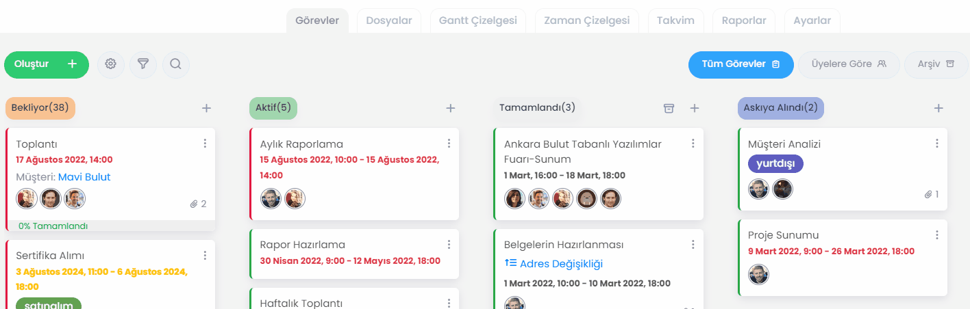 Bu işlemleri gerçekleştirmek için proje arşivinizde görevlerin üstüne fareyle geldiğinizde beliren Kopyala, Arşivden Çıkar veya Sil butonlarından istediğinize tıklamanız yeterli.