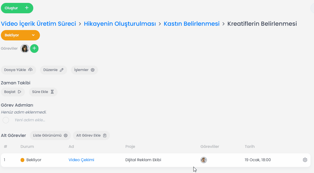 Bu özelliği kullanmak için bir alt görevinizin detay sayfasından Alt görev ekle butonuna tıklayarak işlem yapmanız yeterli.