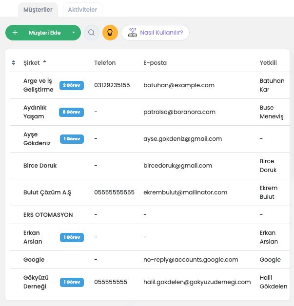 - Müşteriler sayfasına şirket adı ve oluşturulma tarihine göre sıralama seçeneği geldi.
