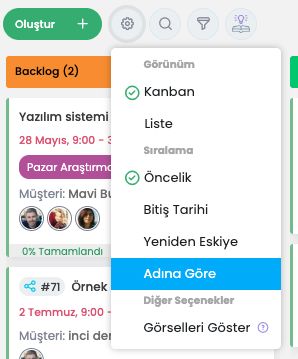 - Görevler > Kanban ve Liste görünümüne ada göre sıralama eklendi.