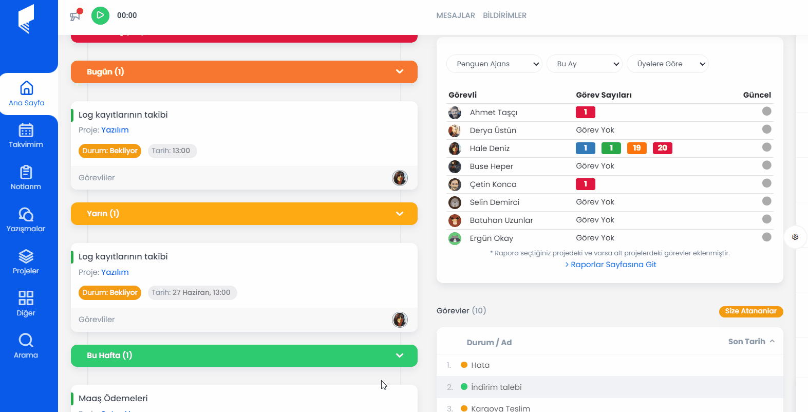 Arama alanına minimum 3 karakterli olacak şekilde metninizi yazın. Görev adı, açıklaması ve gönderi metinlerinde bu metnin yer aldığı görevler arama sonuçlarında listelenir. Arşivde ara sekmesine tıklayarak arşivdeki görevleri de görüntüleyebilirsiniz.